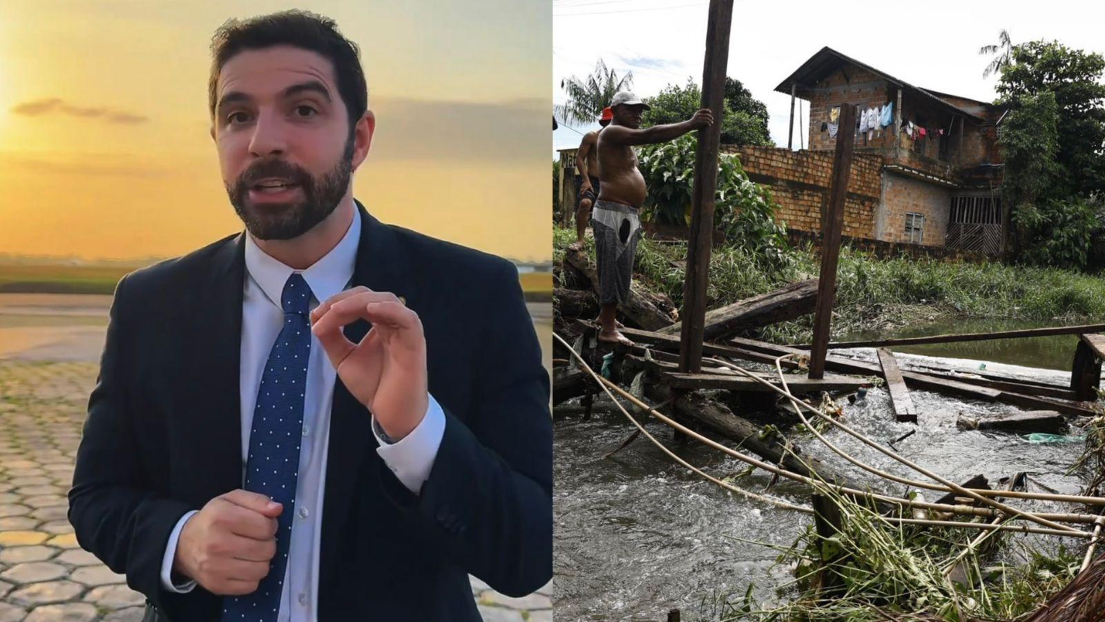Em outro trecho do bairro, na travessa Piedade com a rua Nova, caiu uma ponte, cuja estrutura já estava danificada. “Essa ponte estava quebrada há mais de dois anos. Só tinha dois paus por onde o pessoal passava”, contou Iranilde Tavares, 43 anos. “A chuva de domingo levou tudo. Agora as duas pontes estão quebradas. Não tem como a gente passar”, disse. A ponte dava acesso à rodovia Arthur Bernardes, à feira do Tapanã e aos conjuntos Cordeiro de Farias e Parque União.