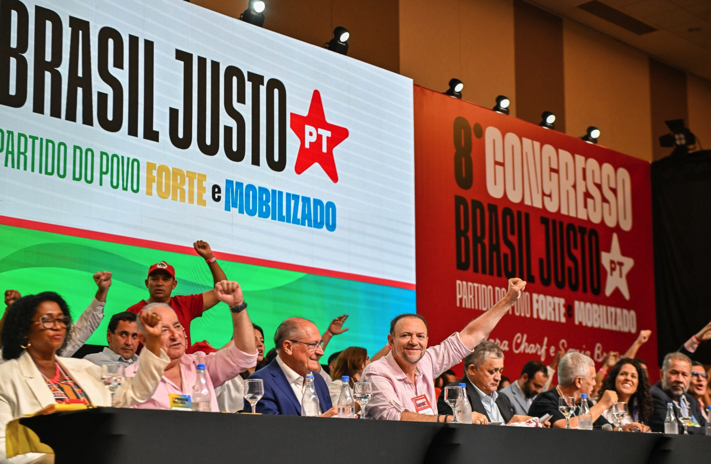 O PT exibiu nesta sexta-feira, 24, durante seu 8º congresso em Brasília, um banner em defesa do retorno do ditador Nicolás Maduro e de sua esposa, Cilia Flores, à Venezuela. A peça trazia a frase “los queremos de vuelta” e um pedido de liberdade ao casal. Militantes também exibiram bandeiras da Venezuela. Um cartaz também...