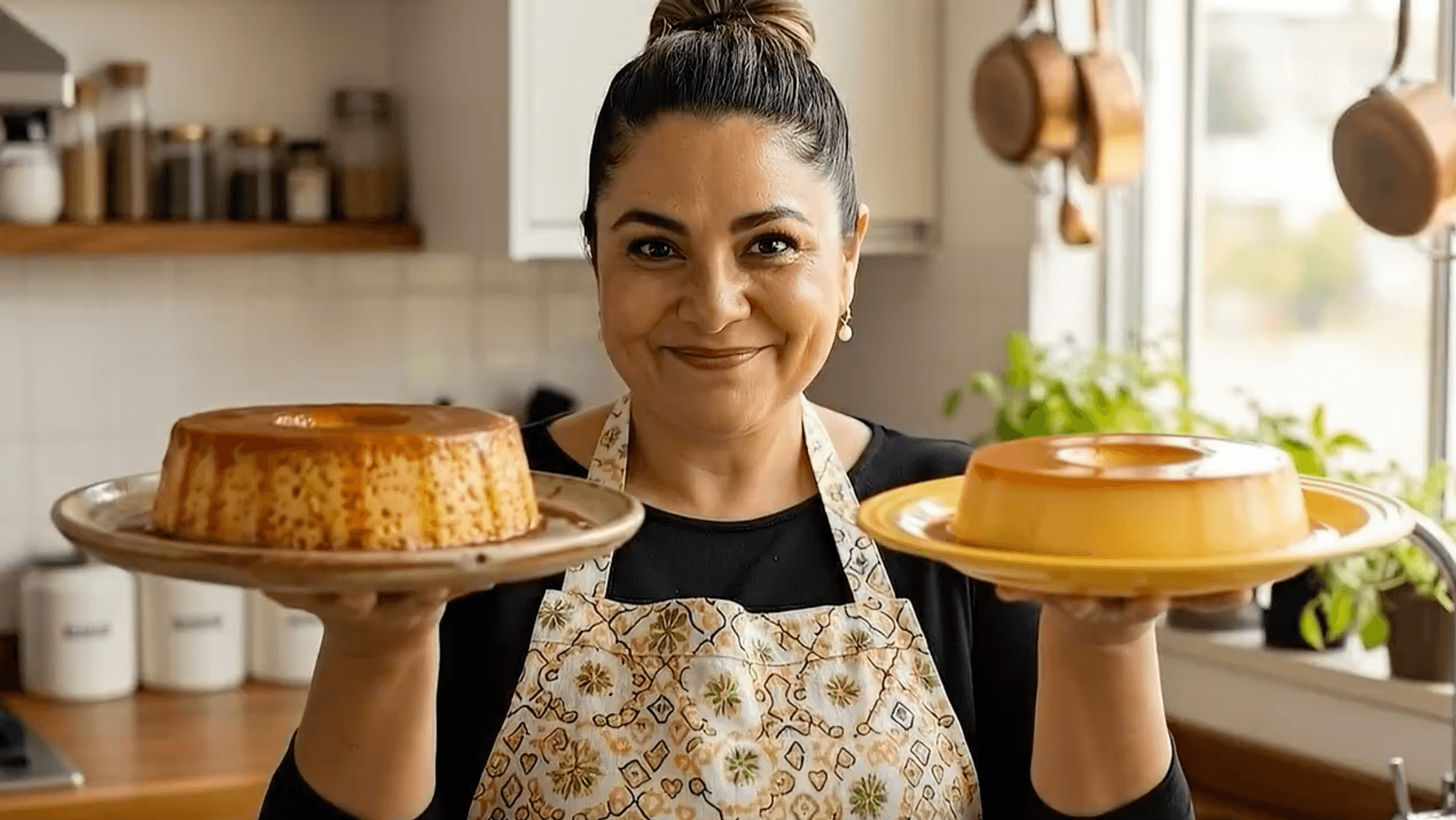 Lia ensina como o controle da temperatura e o tempo de forno transformam a mesma receita de pudim em duas versões irresistíveis