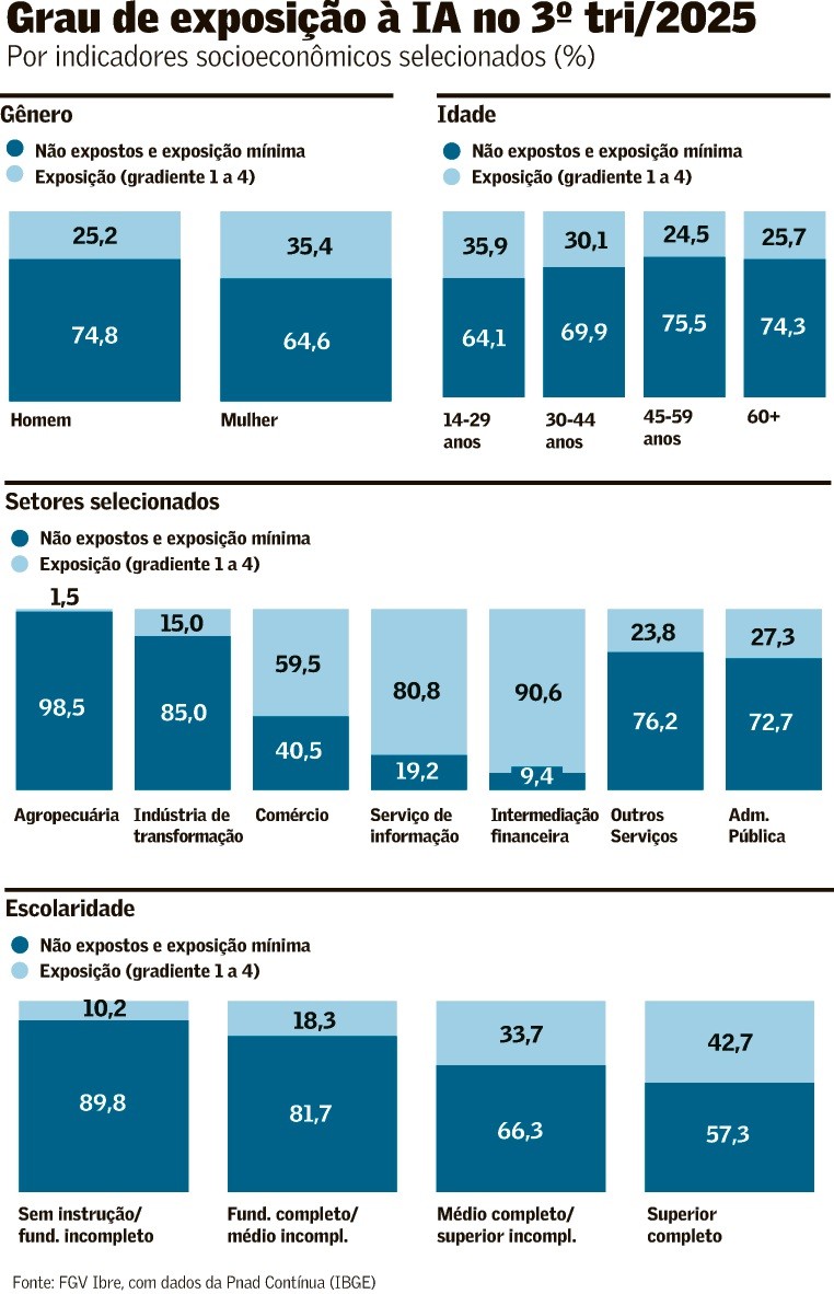 Quase 1/3 dos trabalhadores do país tem emprego exposto à IA