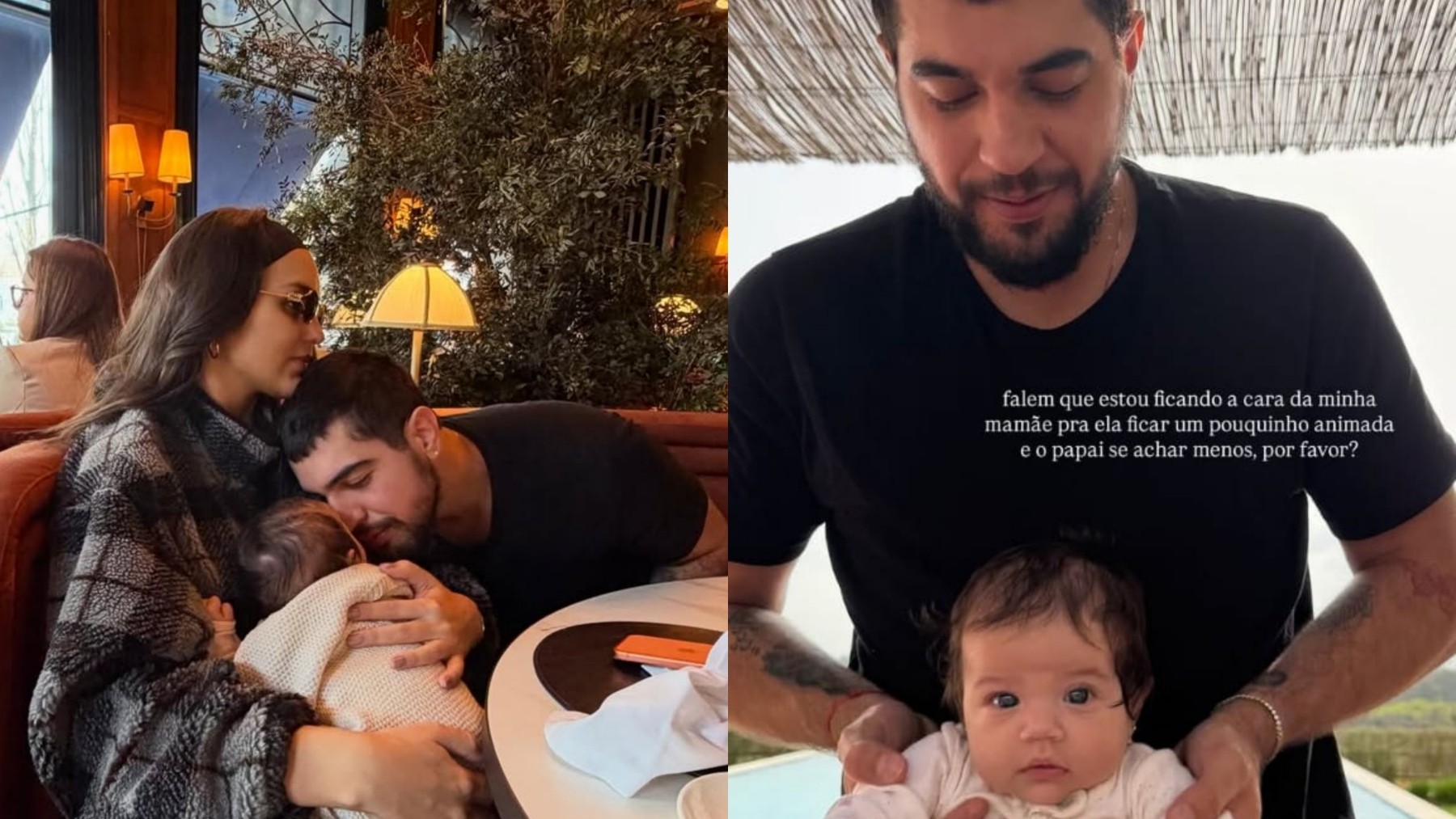 Em um deles, Rafa segura a pequena no colo, vestida com um macacão vermelho; em outro, mãe e filha aparecem em meio a uma paisagem deslumbrante. A última imagem traz Nattan com Zuza, acompanhada de uma legenda bem-humorada da atriz. "Falem que estou ficando a cara da minha mamãe para ela ficar um pouquinho animada e o papai se achar menos, por favor?", como se a bebê estivesse se comunicando com os fãs.