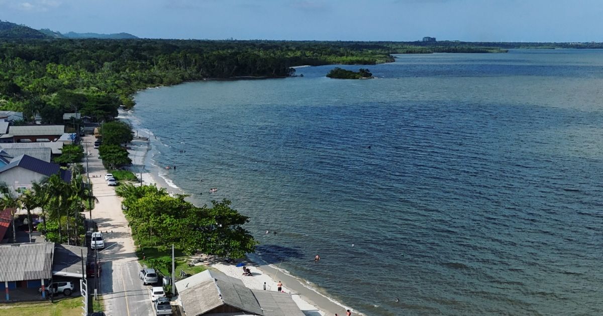 Localizada na Vila da Glória, a Praia Bonita chama atenção pela tranquilidade, natureza preservada e acesso por travessia na Baía da Babitonga