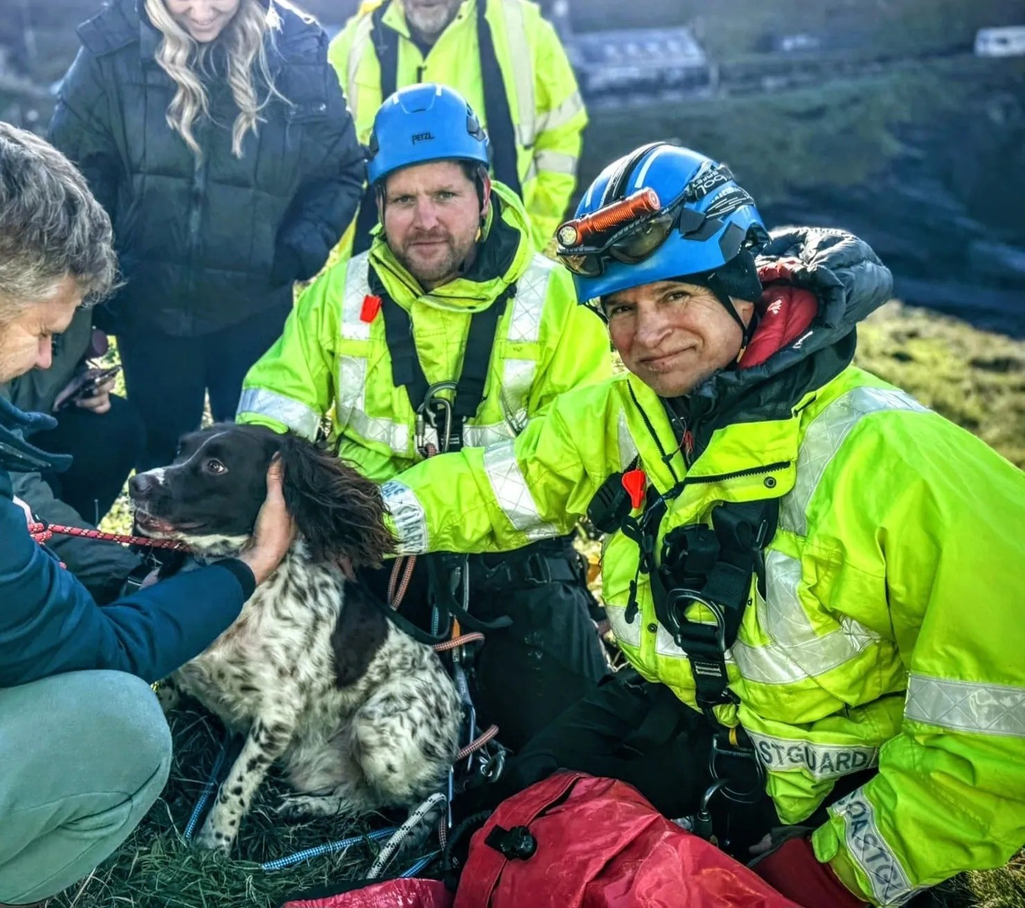 Cachorro é salvo após cair de penhasco de 30 metros na Inglaterra