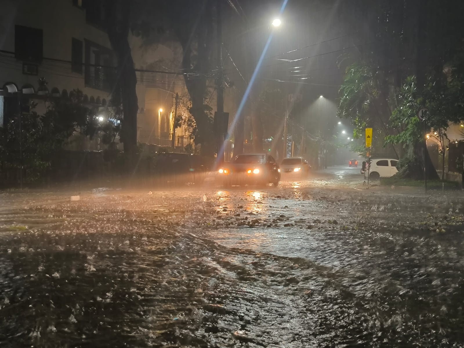 Registro da chuva forte na Marquês de Sapucaí na noite deste domingo, 01 de fevereiro
