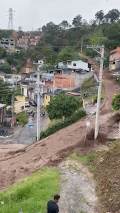 Pelo menos cinco casas foram atingidas pela água. Dez viaturas do Corpo de Bombeiros foram enviadas ao local. Imagens gravadas por moradores mostram o fluxo de água e lama descendo pelas ruas e causando destruição.