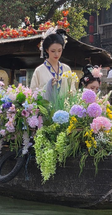 Moças com trajes de época passei...