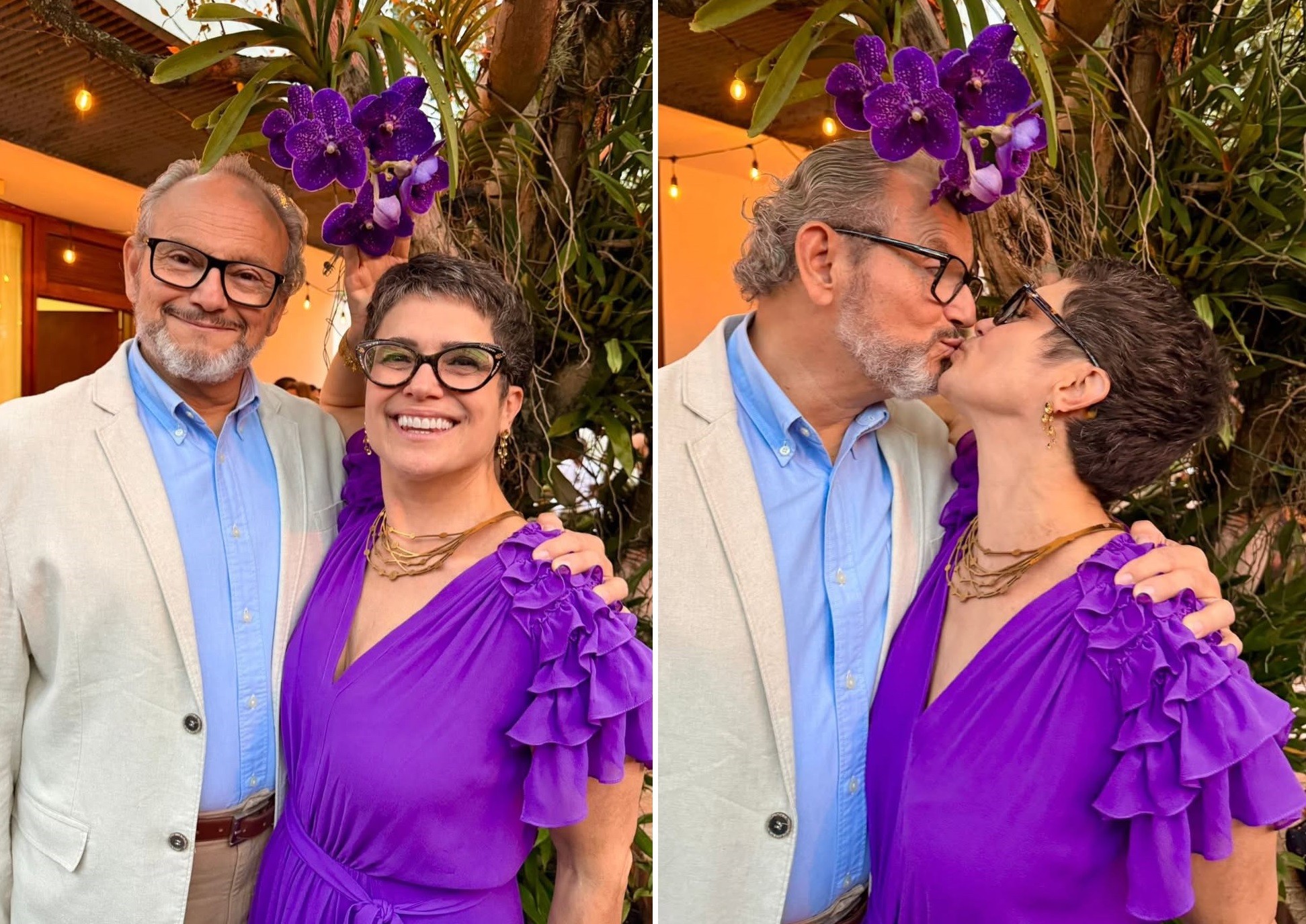 Apresentadora do "Globo Repórter", Sandra Annemberg, de 57 anos, postou uma foto romântica com o marido, o jornalista da TV Globo, Ernesto Paglia, de 67. O registro foi feito no fim de semana, durante um casamento de uma amiga do casal.