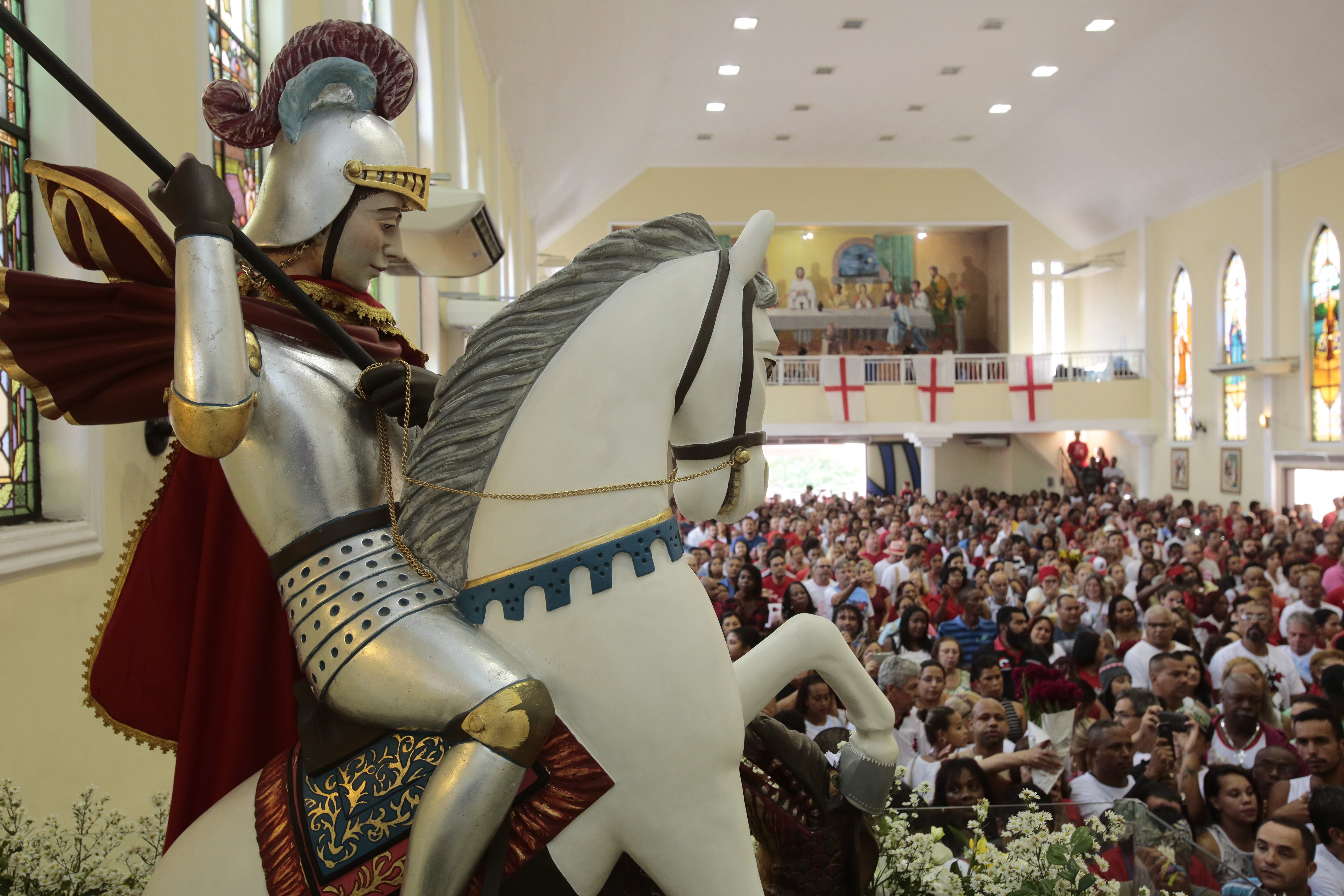 Igreja de São Jorge em Meriti (Rua Dr. José de Carvalho, 38, Vila Tiradentes, São João de Meriti) - Após procissão, às 4h30, estão programadas várias missas, batizados, almoço, carreata e um desfile com a imagem do santo e participação da Banda IV da Marinha do Brasil