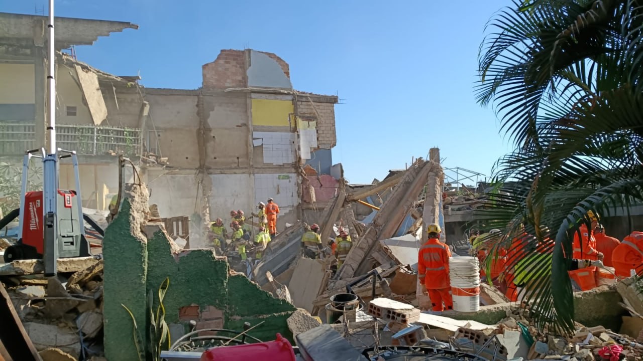 O perímetro do local foi isolado para permitir as operações de busca e resgate. Até o momento, não há confirmação sobre o que causou o desabamento da estrutura. A Polícia Militar também foi acionada para a ocorrência.