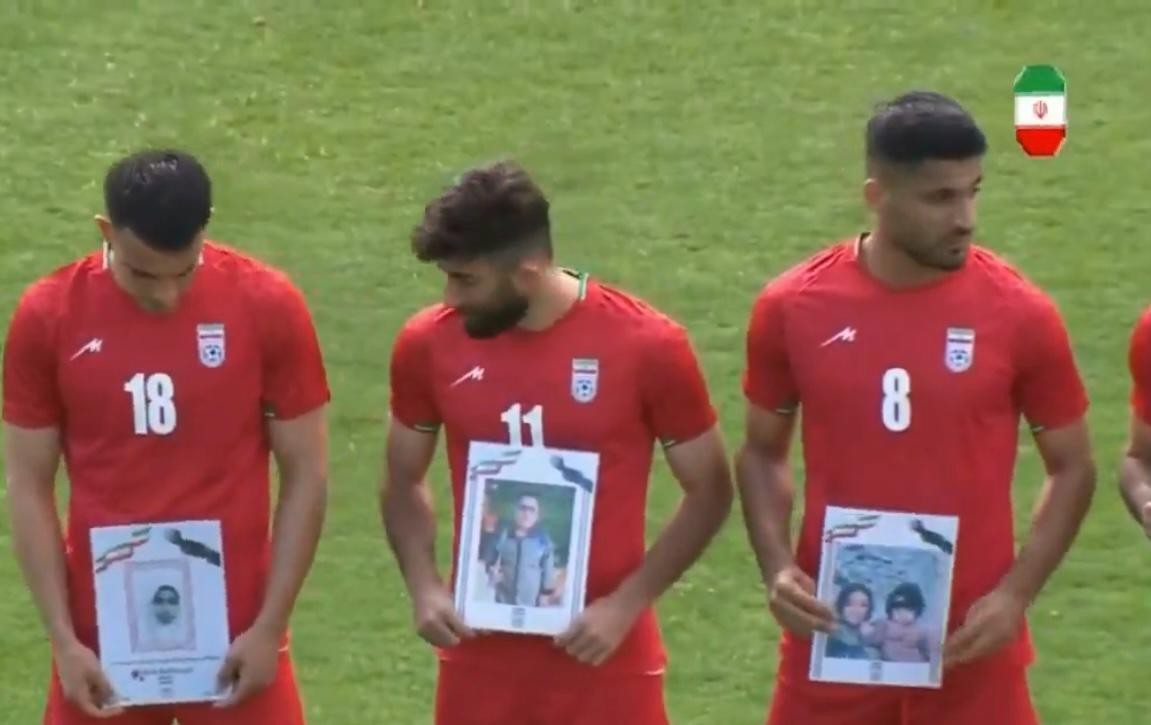 Perfilados, os jogadores exibiram fotos de pessoas que foram mortas no navio de guerra IRIS Dena, abatido por um submarino americano. O ataque vitimou dezenas de marinheiros na costa sul do Sri Lanka. O ataque aconteceu no início de março, e foi a centenas de quilômetros de distância de onde forças americanas e israelenses estavam atacando o Irã. 180 pessoas estavam à bordo.