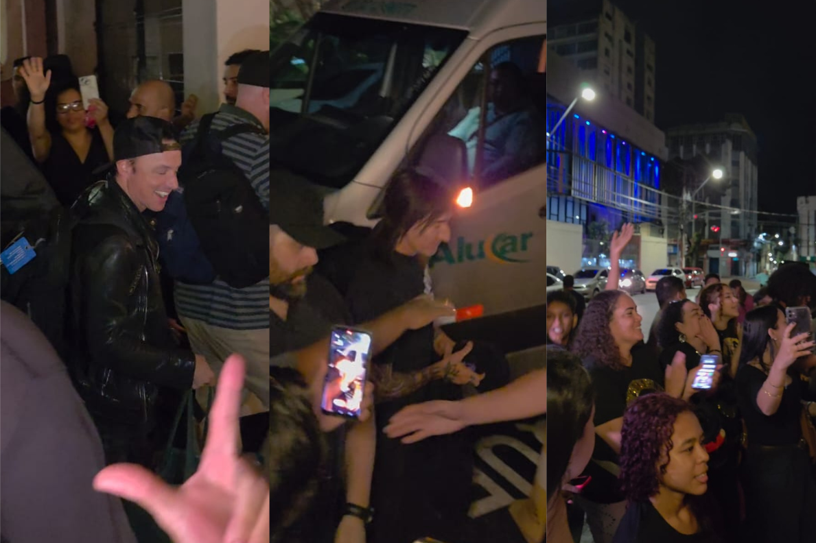 Antes disso, parte dos fãs já havia acompanhado o desembarque da banda no aeroporto e seguiu em direção ao hotel para tentar fotos, autógrafos e interação com os integrantes. A movimentação começou ainda no início da noite e reuniu dezenas de pessoas.