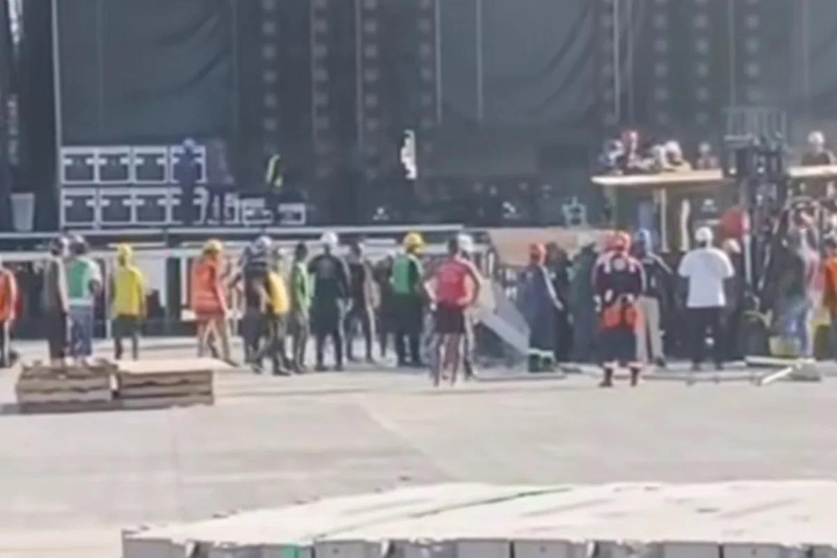 Os organizadores também detalharam o atendimento prestado à vítima logo após o ocorrido. Segundo a nota, equipes de socorro realizaram os primeiros procedimentos ainda no local, e o Corpo de Bombeiros foi acionado para encaminhar o trabalhador ao hospital.
