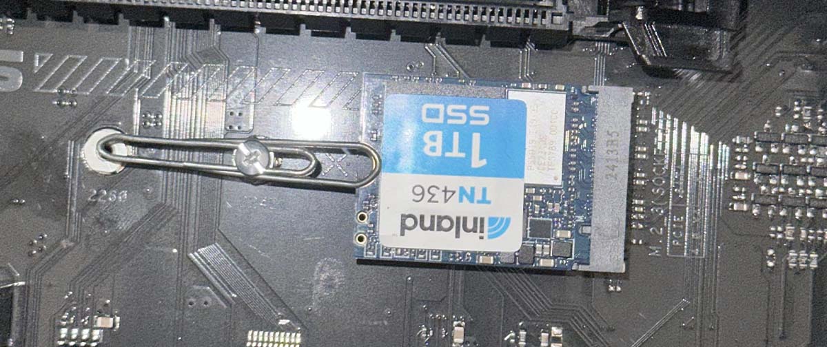 Faltou o parafuso do SSD M.2? Um usuário do Reddit usou um clipe de papel lixado para fixar um SSD de 900 GB e garantir a velocidade máxima na transferência de arquivos.