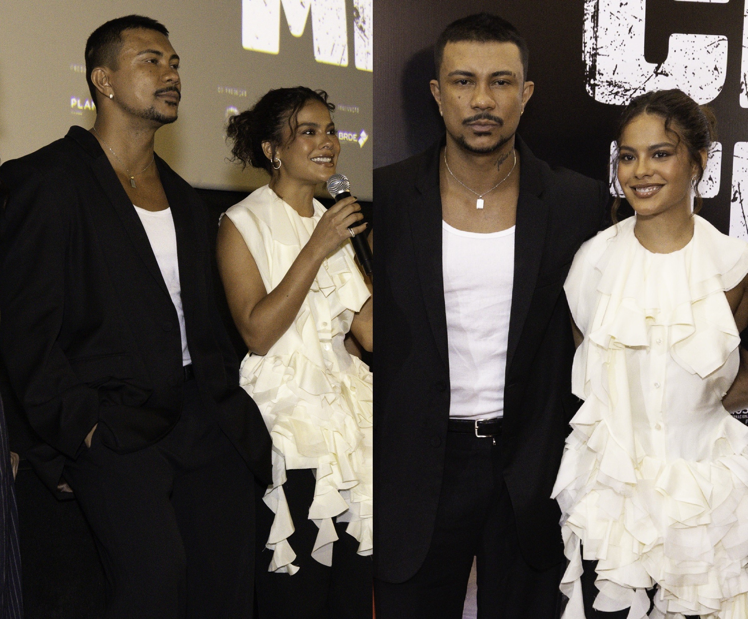 Xamã e Bella Campos na pré-estreia no Rio e na cena do filme "Cinco tipos de medo"