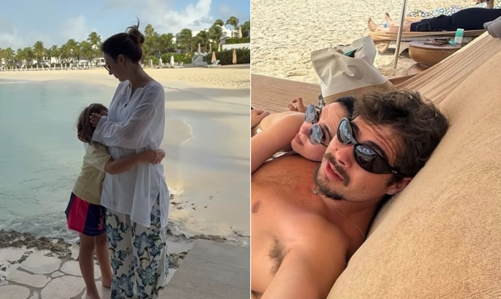 "Chamego de mamãe, bençãos da natureza, pai gato, filha alta calçando 31. Tudo isso no meu livro que espero alguém escrever e eu só assino", escreveu. A postagem tem um vídeo em que ela aparece dando um abraço em Clara, que tem 6 anos de idade, diante do mar. Na sequência, Rafael aparece sozinho e de costas sob um arco-íris numa foto.
