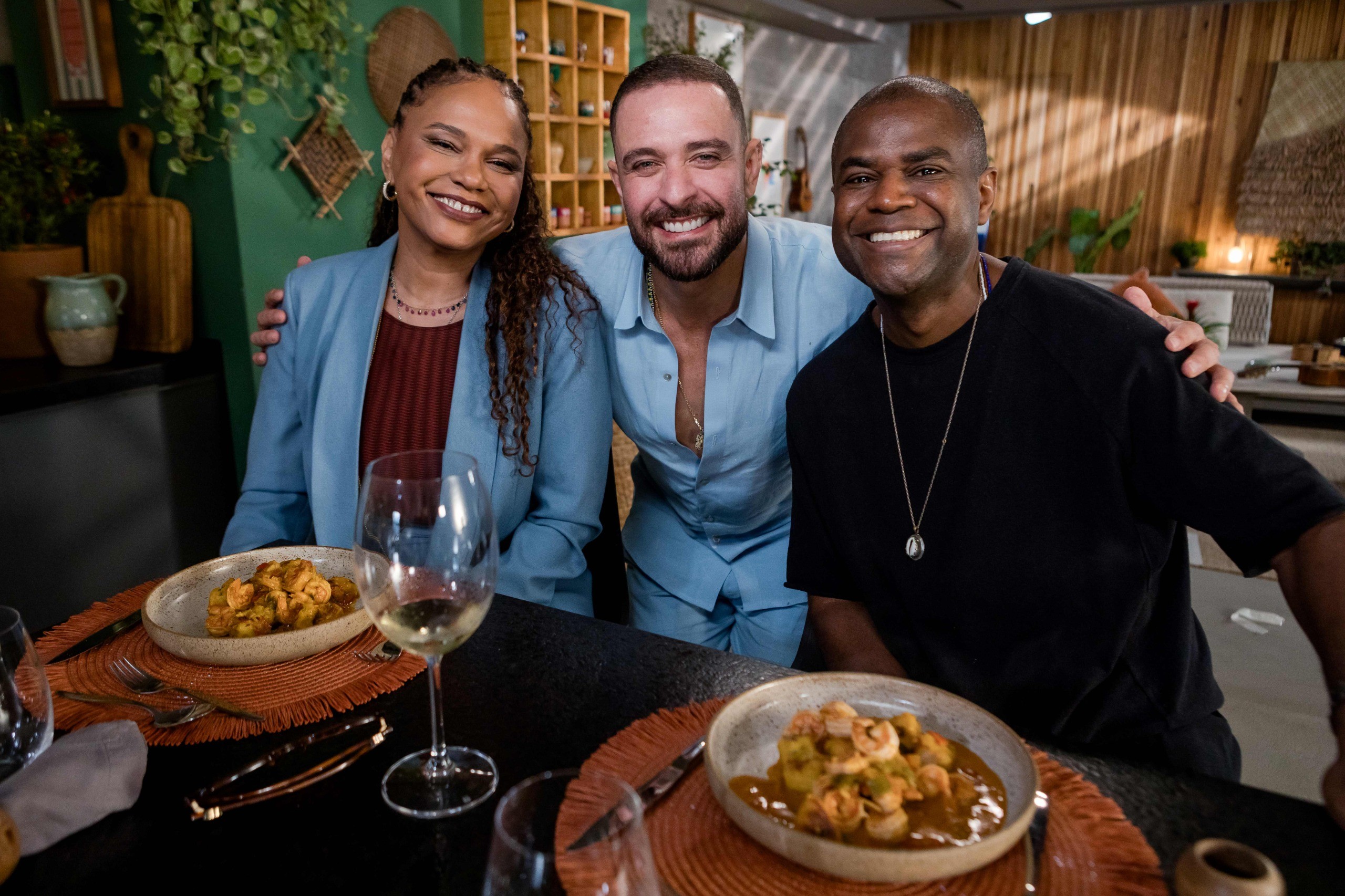 Teresa Cristina e Pretinho da Serrinha são os convidados do “Diogo na cozinha” que vai ao ar nesta quarta-feira (1º de abril), às 22h, no GNT. Durante o preparo das receitas, a cantora relembra sua ligação afetiva com as feiras de rua, tema deste episódio do programa, e conta que o pai era feirante. “Eu amo o cheiro de feira. Até a parte do peixe me emociona, é a que me lembra a minha infância. Eu era paparicada, todo mundo me dava tudo: fruta, tudo!”, recorda ela. Já Pretinho diz que, para ele, a feira também tem um significado especial. “O pagode era domingo depois da feira. Outra lembrança é que a gente saía do samba do Império (Serrano) de sábado para domingo, e passava pela feira”, recorda o músico.