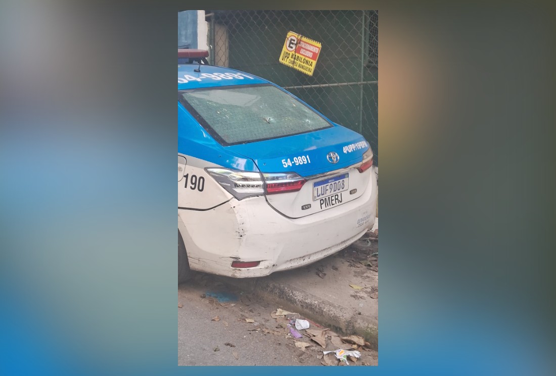 Uma foto que circula em redes sociais mostra marcas de disparos numa viatura da PM. Os bandidos fugiram. Foram apreendidos um fuzil e drogas. O policiamento foi intensificado na região.
