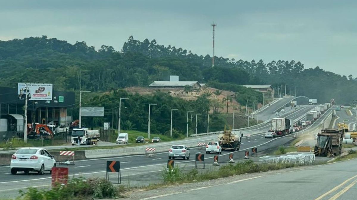 Trecho crítico da BR-470 é liberado em viaduto, mas segue em pista única em SC