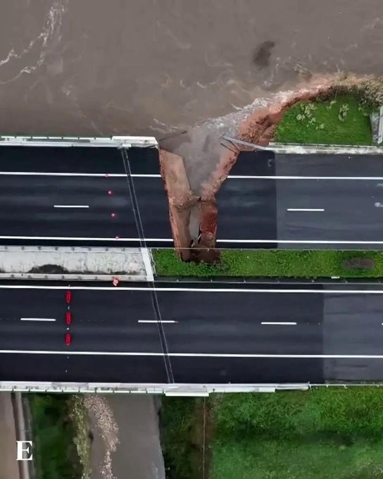 Parte da autoestrada A1, principal ligação rodoviária entre Lisboa e Porto, em Portugal, desabou na tarde desta quarta-feira na região de Coimbra, após a ruptura parcial de um dique do rio Mondego. A força da água provocou erosão na base da estrutura, abrindo uma cratera no quilômetro 191,2, segundo a Proteção Civil.