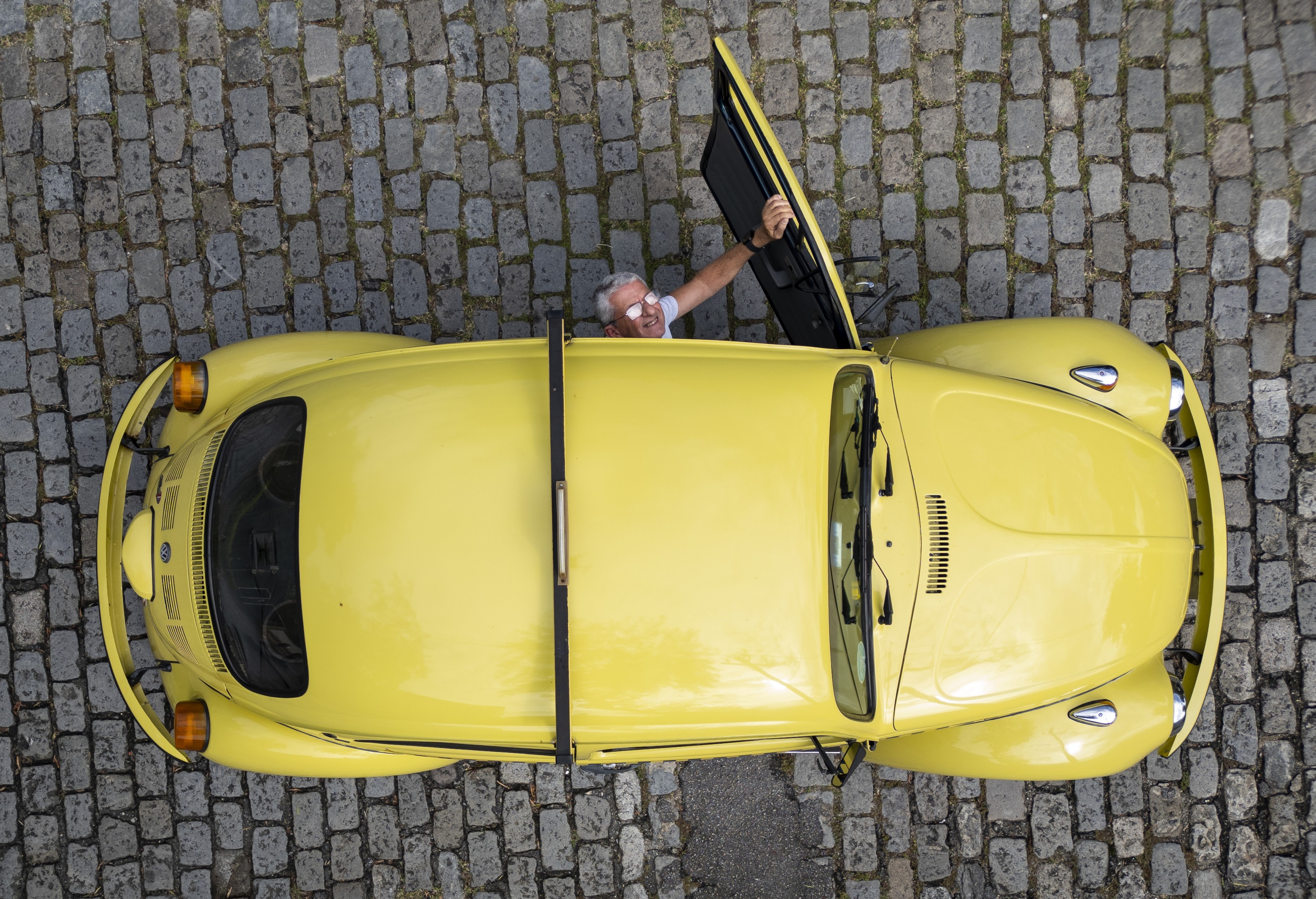 Não são só os pequenos que gostam do “carrinho”. O próprio Marcos é fã e fiel. Já teve um modelo 1969 e outro 1977 antes de largar a carreira como bancário e virar taxista. Desde então, foram mais “três ou quatro” amarelinhos. Ele se emociona ao lembrar que os carros garantiram o sustento da família e a formação da filha, hoje médica. A voz embarga de vez quando conta que ela escolheu chegar ao seu casamento a bordo do fusca-táxi do pai. No mês que vem, a cerimônia completa um ano, e ainda está bem viva na memória de todos.