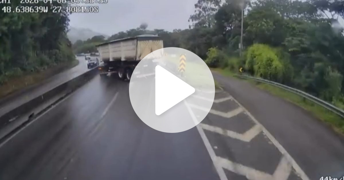 Um ano após grave acidente no Morro dos Cavalos, carreta derrapa no mesmo local e quase tomba