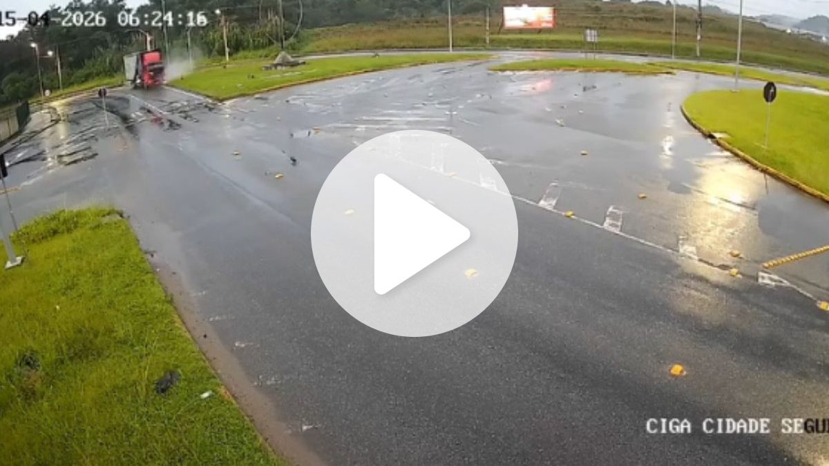 VÍDEO: Caminhão perde controle em curva, bate violentamente e motorista é arremessado em SC