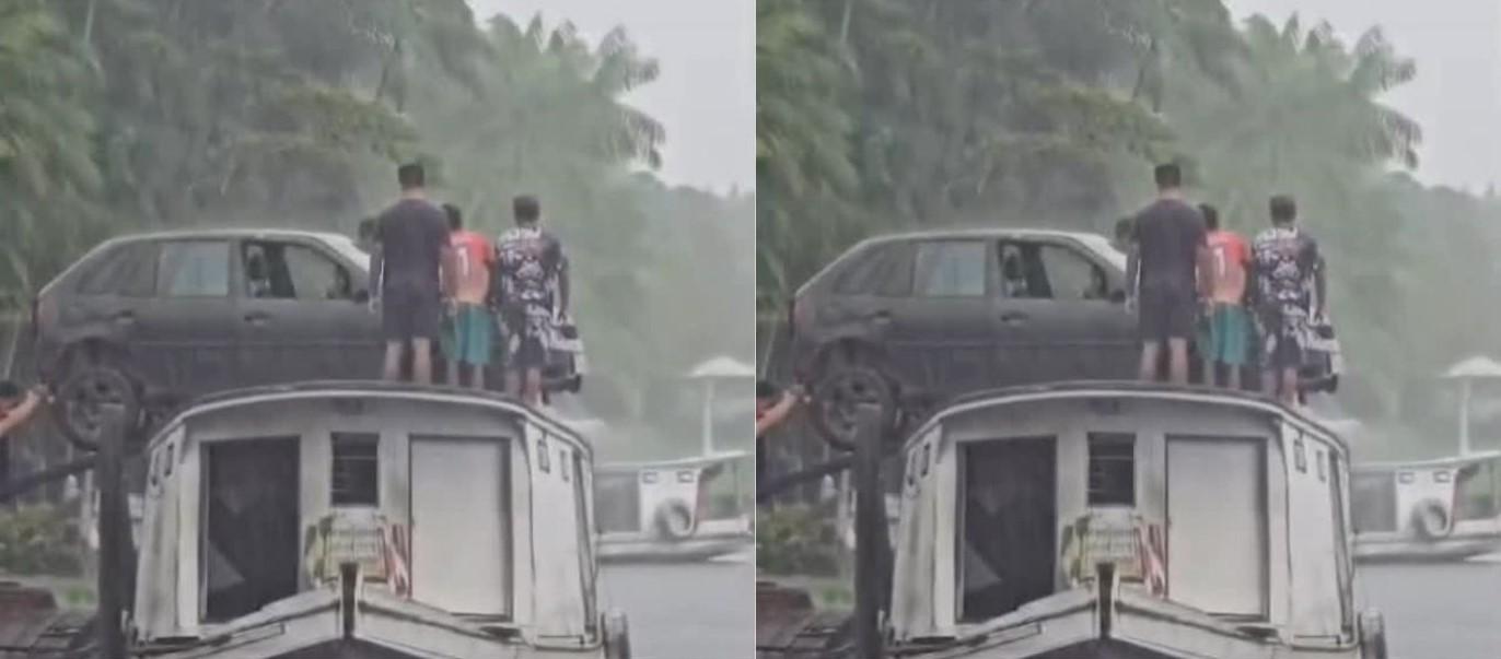 No vídeo, que rapidamente se espalhou pela internet, é possível ver um grupo de homens ajudando a colocar um carro em cima de um barco, mesmo com chuva, em um transporte improvisado que chamou a atenção pelo perigo envolvido e pelo jeito criativo de movimentar o veículo.