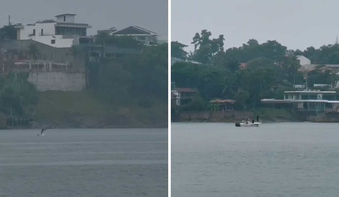Foto: Agnaldo JonasOs golfinhos começaram as acrobacias no meio da tarde desta sexta (20). O espetáculo foi perto de um grupo que fazia aula de canoa havaiana