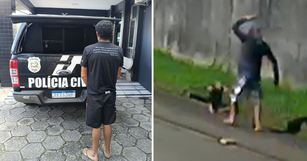 Homem foi flagrado por câmeras agredindo e arrastando o animal silvestre após ataque em Turvo, no Sul de SC