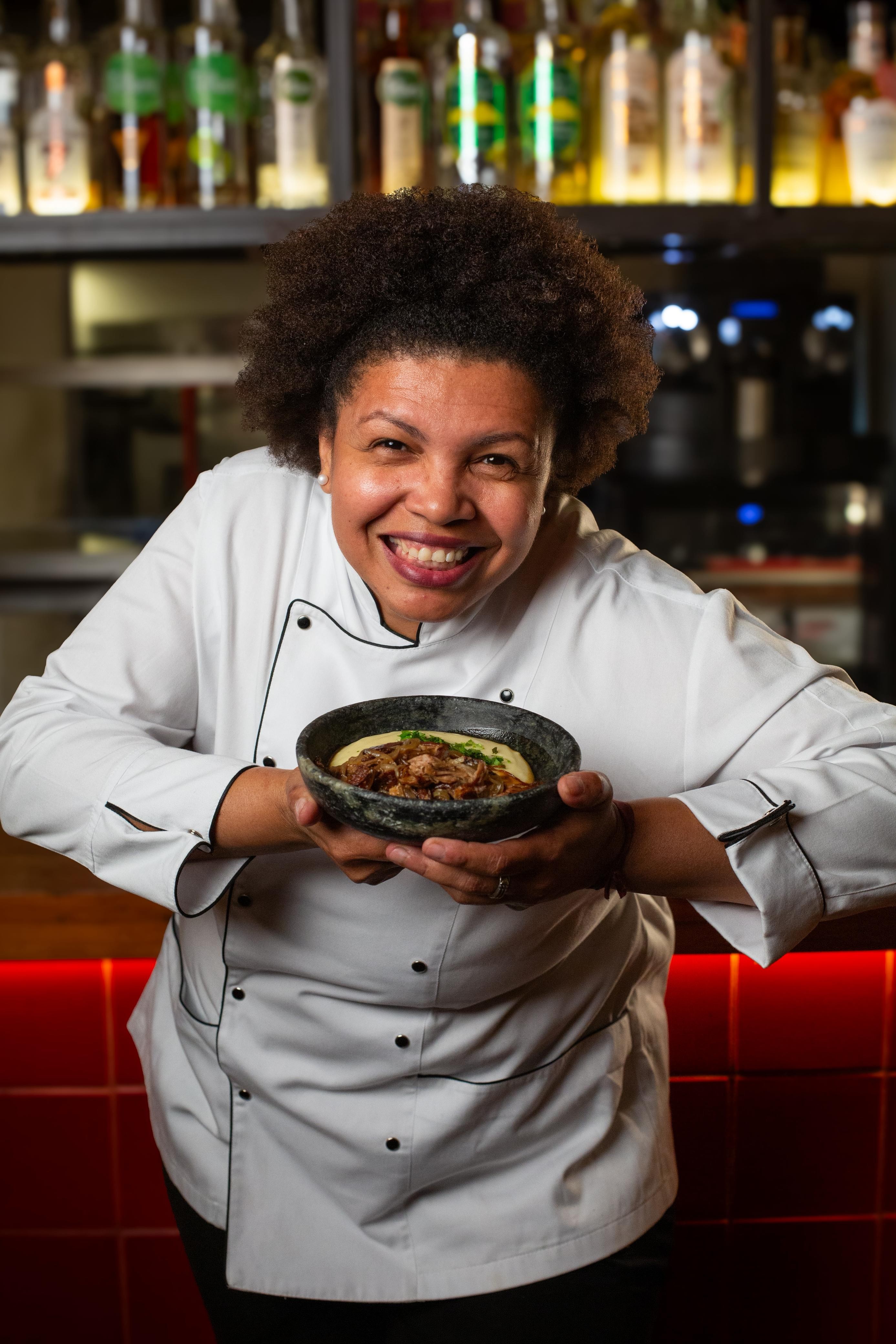 No cardápio, arroz de hauçá, um carreteiro de pirarucu, tucupi e especiarias amazônicas, a versão de de carreteiro vegano, que criou especialmente para a ocasião, tropeiro com cuscuz de milho, salada de abóbora com feijões, moqueca e muito aipim fritinho na hora "para prestigiar o aipim de Santa Cruz, o maior fornecedor do produtos dessa cidade" exalta a chef, que é torcedora da Mocidade Independente de Padre Miguel
