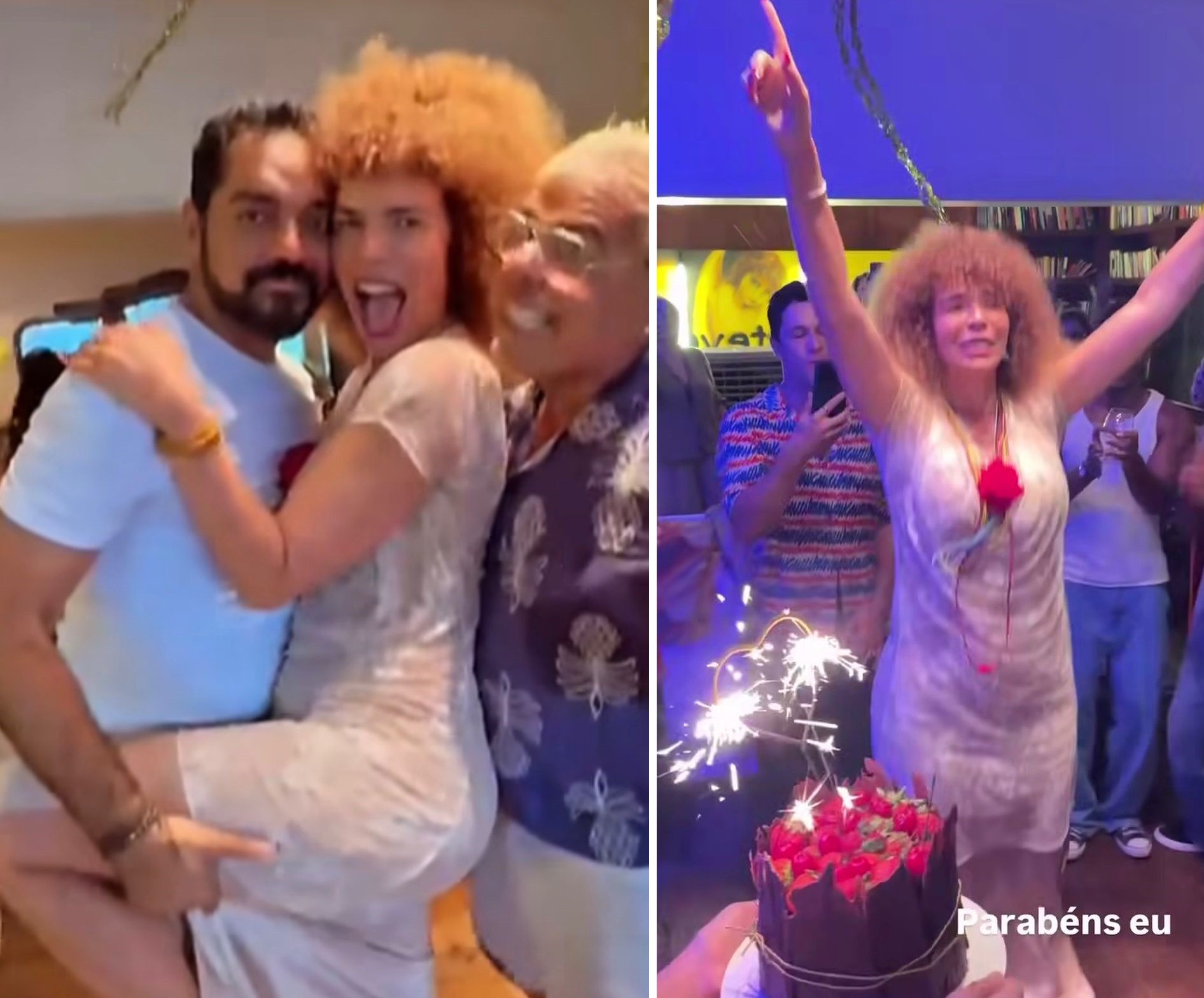 Nos vÃdeos compartilhados nas redes sociais, Vanessa e os convidados surgem animadÃssimos, dançando e celebrando na sala do apartamento da artista.