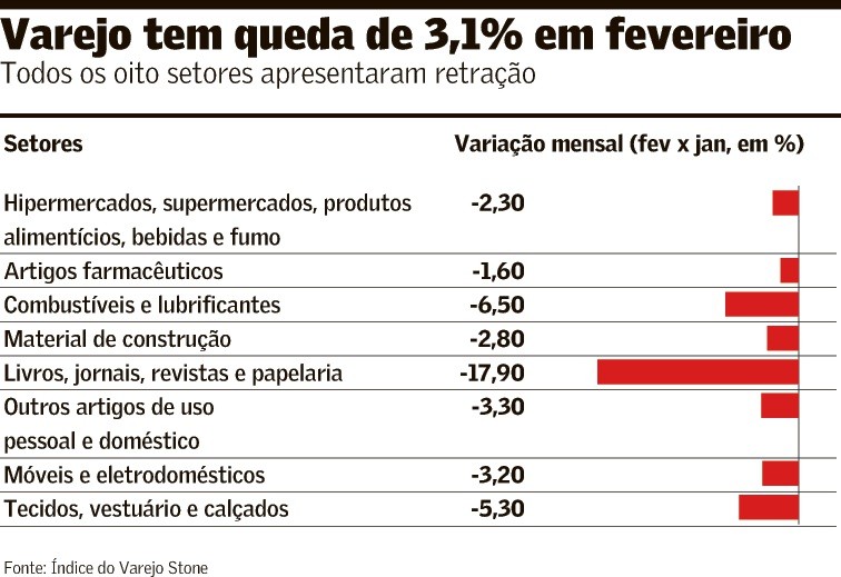 Varejo cai pelo 4º mês seguido, aponta Stone