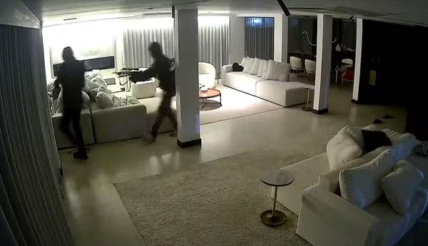 Os bandidos também danificaram as câmeras de segurança da mansão para evitar o registro da ação. "Eles entraram pelos fundos da casa, que dá para uma área de mata e, por isso, não tem imagens de segurança. Fizemos esse percurso e verificamos por onde eles entraram e lá estava essa escada, onde foram colhidas digitais porque, mesmo mascarados, eles não usaram luvas", detalhou o delegado.