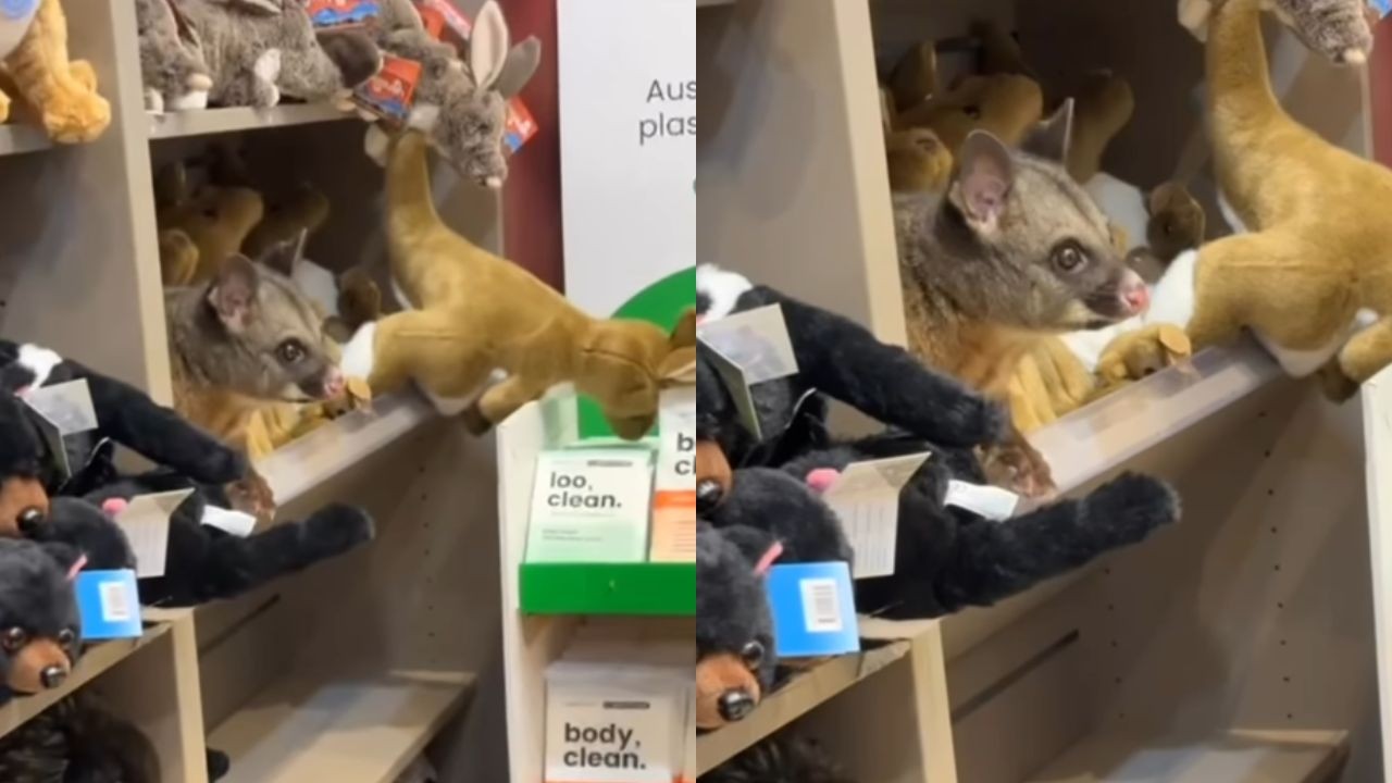 Viralizou: gambá é encontrado entre bichos de pelúcia em loja de aeroporto na Austrália; vídeo