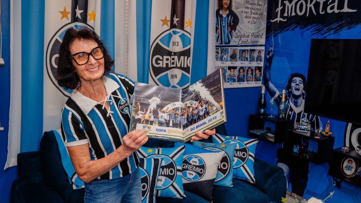 Mercedes Cerutti é torcedora apaixonada pelo Grêmio e transforma cada detalhe da casa em uma demonstração de amor pelo clube gaúcho, em São João do Oeste, no Extremo-Oeste de Santa Catarina