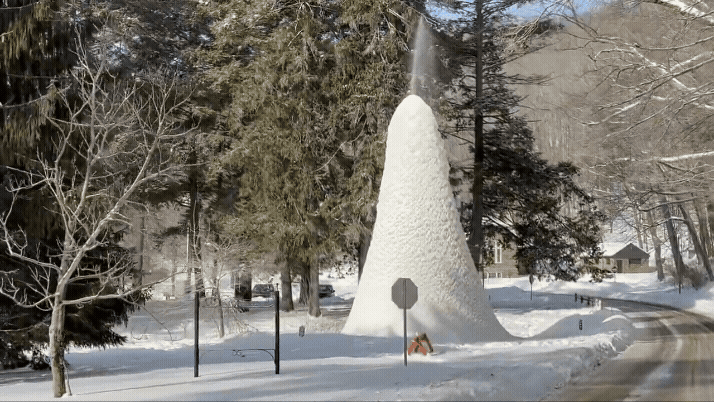 'Vulcão de gelo' é formado em parque no estado de Nova York